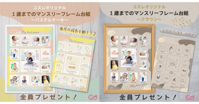 | 特徴 | コズレ会員全員にプレゼント♪月齢が進むにつれても星の数がUP! | コズレ会員全員にプレゼント♪カスタマイズできる仕掛け付き。 | メルマガ登録でもらえる!落ち着いたくすみカラー。 | コズレ公式LINE友達追加でもらえる!かわいいモチーフがたくさん。 | コズレ公式LINE友達追加でもらえる!くすみブルーと星がクールな印象を演出。 | コズレ公式LINE友達追加でもらえる!ナチュラルで淡い色柄のお洋服にピッタリ。 | コズレ公式LINE友達追加でもらえる!毎月異なる動物やイラストと一緒に成長を記録。 | コズレ公式LINE友達追加でもらえる!パレットのような彩り豊かな丸形がポイント。 | コズレ公式LINE友達追加でもらえる!カラフルな数字が元気な印象に。 | コズレ公式LINE友達追加でもらえる!上品な華やかさを演出。 | コズレ公式LINE友達追加でもらえる!シンプルで使い勝手抜群。 | コズレ公式LINE友達追加でもらえる!おしゃれで柔らかみのある雰囲気に。 | コズレ公式LINE友達追加でもらえる!ビタミンカラーのお星さまがポイント。 |