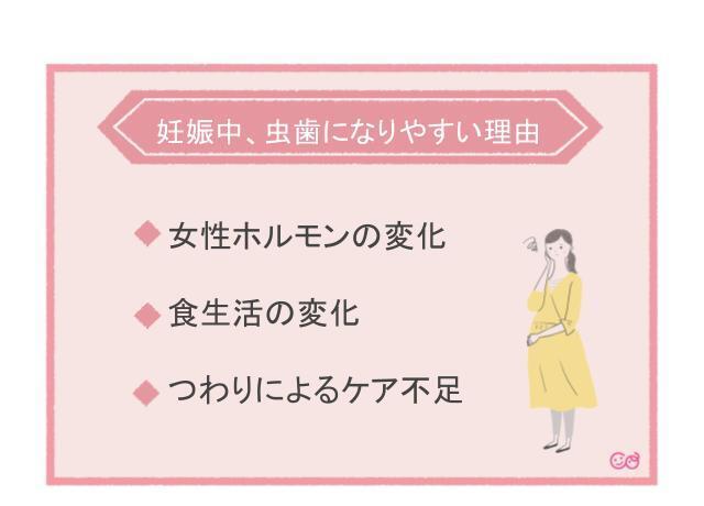 つわりによってケアが十分に行き届かず、汚れが残ったままの状態でいると虫歯のリスクが高くなります。