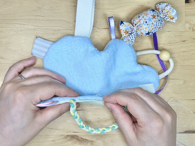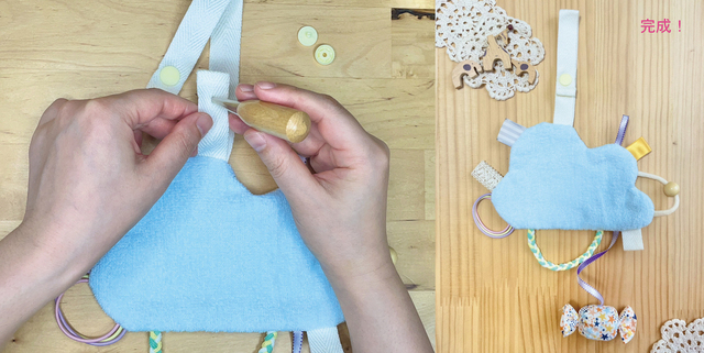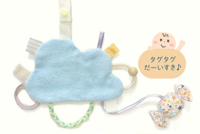 誤飲や怪我などにつながらないように、タグなどの飾りは、できるだけ頑丈に縫い付けてくださいね。
