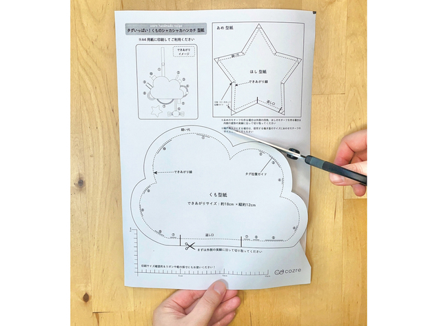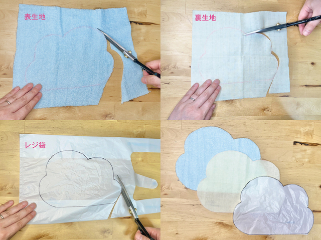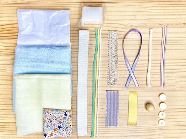 ・表生地&裏生地:各縦20cm×横25cm・モチーフ用生地:「あめ」10cm角、「ほし」10cm角2枚