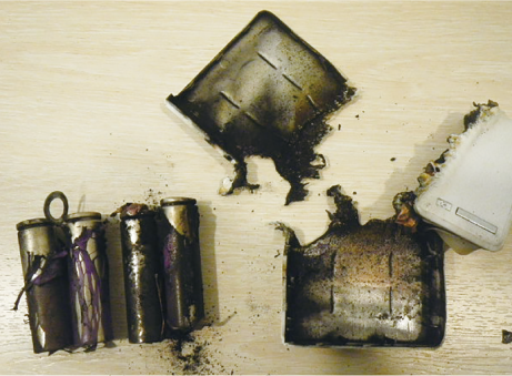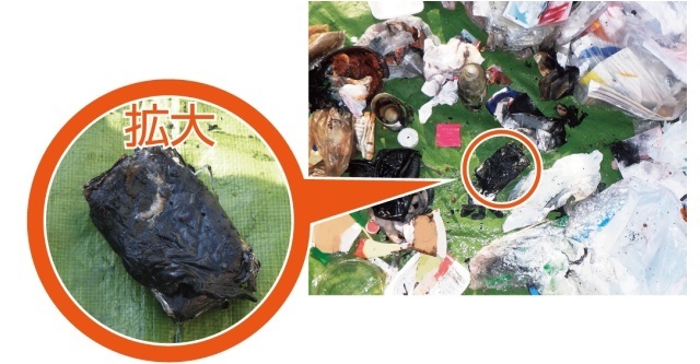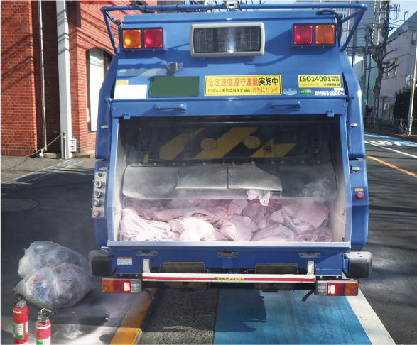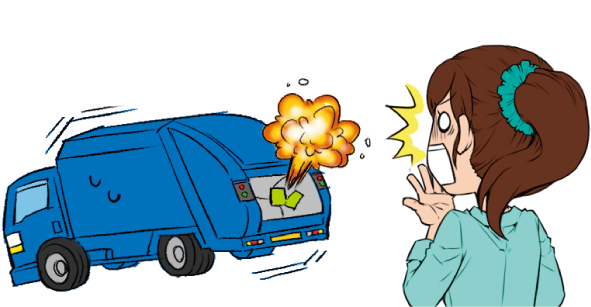 収集したゴミの中でつぶれて発火したリチウムイオン電池