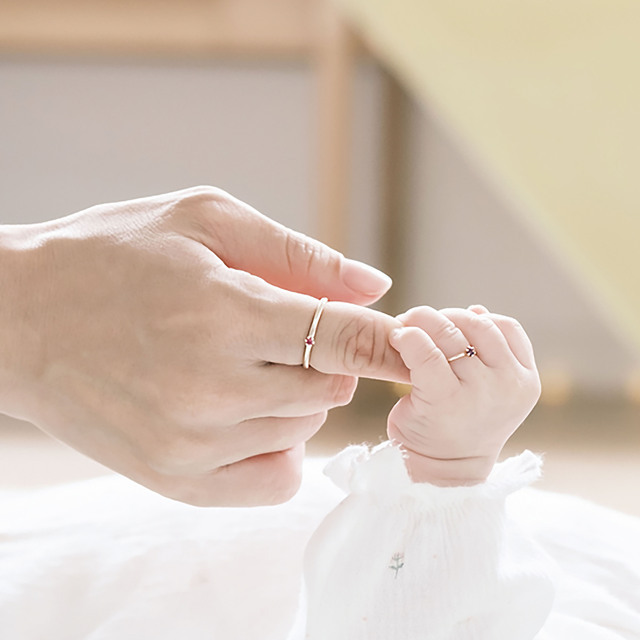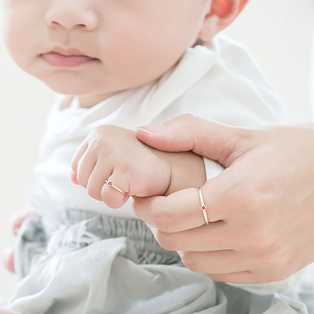 その声にお応えしてnenenowaで人気のベビーリングtsubomiのマザーリングを製作致しました。ベビーリングとお揃いにしたり、誕生石やリングの色を変えてみたりと親子で楽しめるリングです。
