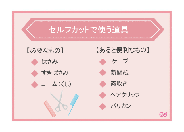 刈上げないヘアスタイルなので、はさみとすきばさみがあればできますよ。