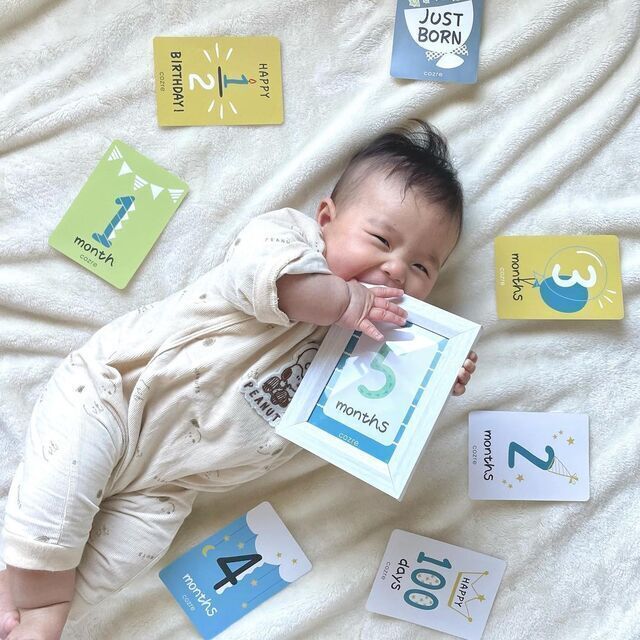月齢の数字は見やすく、統一感のあるシンプルなデザインは、赤ちゃんの表情を引き立ててくれますよ。