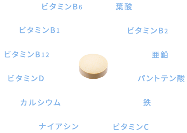 葉酸以外にも、妊娠期に必要だとされる鉄・カルシウム・亜鉛など、プレママが積極的にとりたい12種類の栄養素も配合。