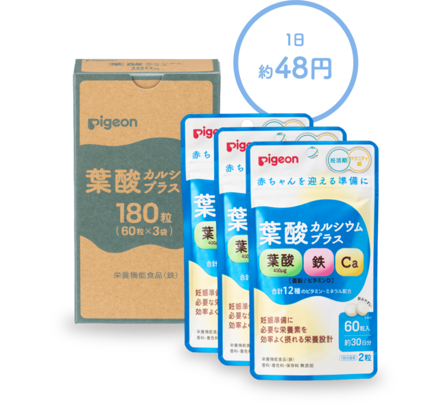 公式オンラインショップ限定の「葉酸カルシウムプラス 180粒」(4,298円税込)なら、1日あたり約48円とさらにお得!
