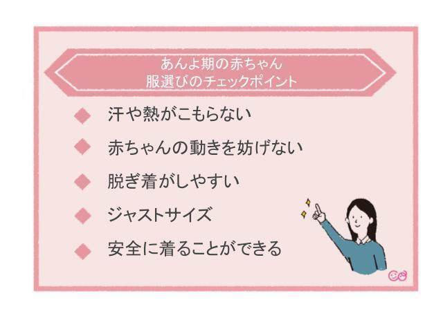 赤ちゃんの動きを妨げないようぴったりしすぎず、ゆとりのあるデザインのものを選んでくださいね。