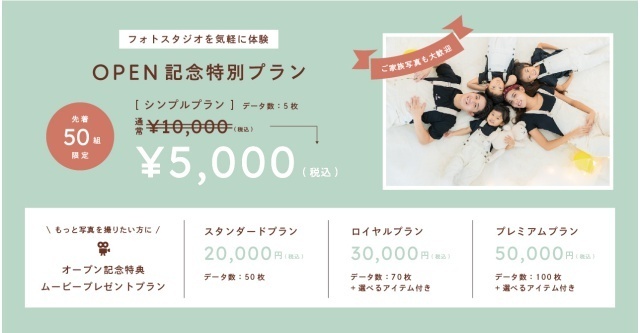 “写真を撮った日がかぞくの記念日になりますように。”そんなママの想いでうまれたフォトスタジオです。