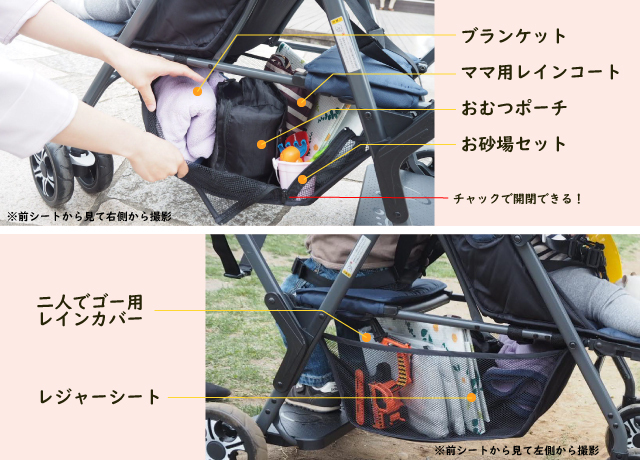 このベビーカーだったら、後部座席は子どもが乗り降りしやすいので、下の子が寝ていても、上の子が遊びやすそうですよね。