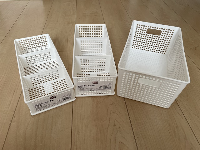 まずは、グシャグシャになってしまう洋服の引き出し用に、仕切りBOXを準備。
