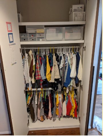 洋服の収納は数が多く、子どもが小さいうちはどんどんサイズが変わるので、頭の痛い問題。