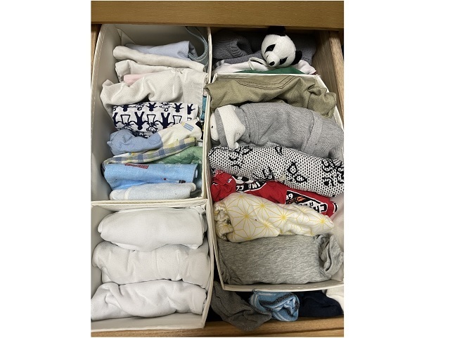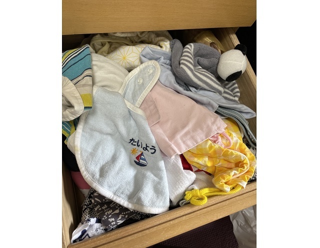 編集部ママN 子どもの服は小さいので、引き出しの中ですぐバラバラに!靴下やスタイなども、すぐあちこちに散らばってしまいます。
