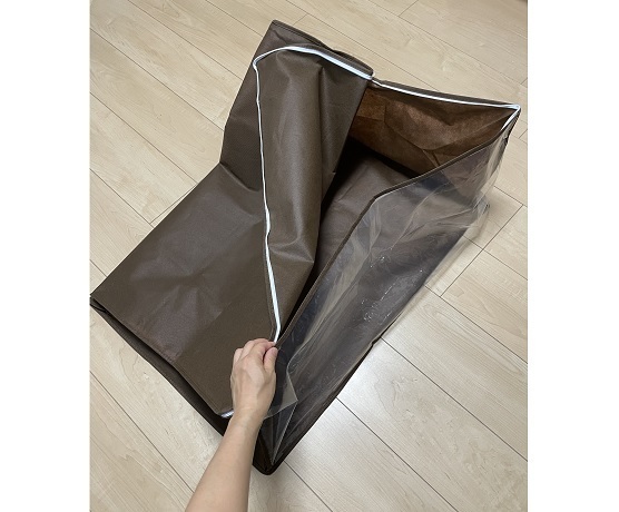 seaさん まず、箱で収納するのはNG!窓付きの不織布ケースや透明な圧縮袋を活用しましょう。