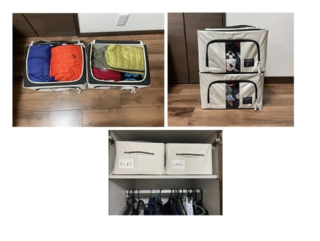 箱だと中に入れた衣類が見えないので、後から目当てのモノを探すのが大変ですし、この先、季節とサイズの組み合わせが増えていったときに、スペースが足りなくなる可能性も高いんです。