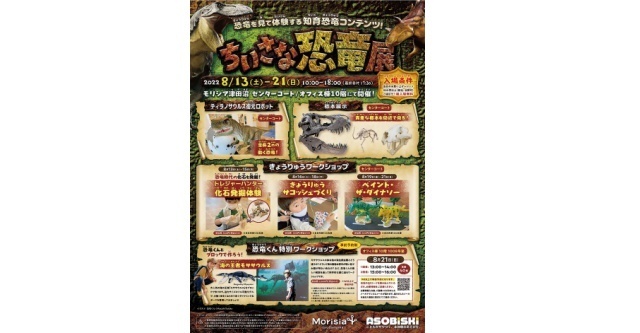 出典:oyakonojikanlabo.jpサイエンスコミュニケーター「恐竜くん」監修による 「ちいさな恐竜展」が、8/13(土)〜 8/21(日)に、野村不動産グループの野村不動産コマース株式会社(所在地:東京都新宿区、代表取締役社長:矢野忠孝)が運営するMorisia津田沼にて、開催されます。