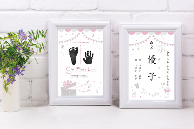 赤ちゃんの名前、誕生日、出生時間、身長、体重を記入し、フレームに入れれば、ギフトにもぴったりです。