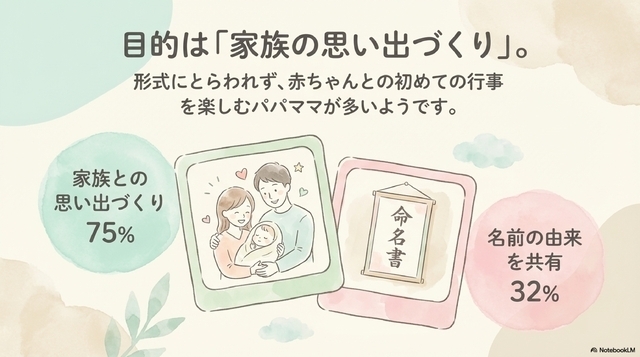 しかし「お七夜・命名式」を行ったママパパの多くは、「家族との思い出が増えた」「子どもの名前の由来や思いを共有できた」など、家族との良い思い出作りができたと回答されています。
