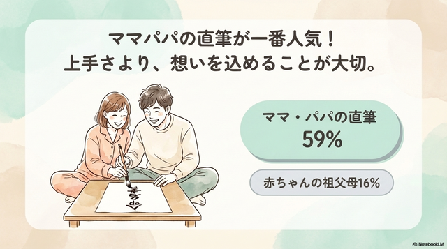 アンケート結果にもあるように、赤ちゃんのママパパのどちらかが作成したり、オンライン/印刷サービスを利用したりと、家族の好みに合わせたスタイルで命名書を作成されているようです。