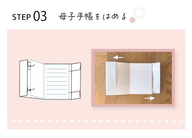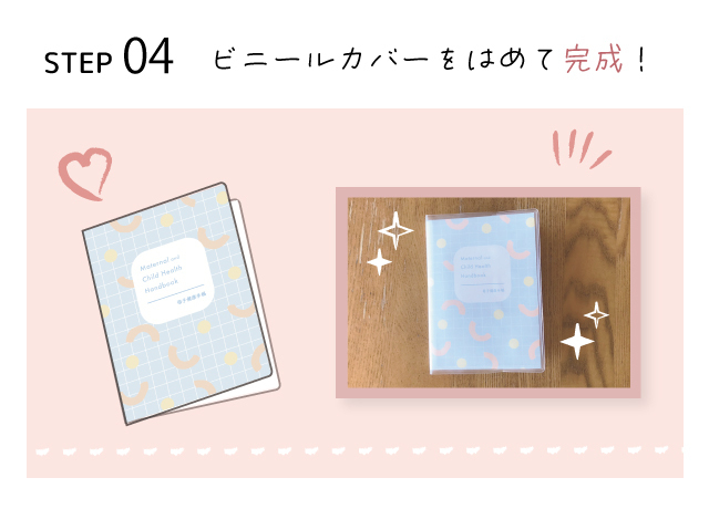 ③母子手帳に用紙をセットして、透明ビニールカバーをかければ完成。