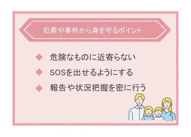 ずっとつけてくる人や突然声をかけてくる人、暗い道や人通りの少ない場所は、危険であることを徹底して伝えましょう。