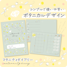 | 特徴 | パステルカラーとボタニカル柄がポイント♪月間と週間スケジュールの管理ができるベーシックなデザイン。 | かわいい動物の親子が愛らしいデザイン。1週間ごとにコメントを書き込めるほか、アレンジ自在なフリースペースも充実。 | 出産準備が楽しくなりそうなベビーグッズデザイン。健診や家族の予定も把握しやすい月間&週間スケジュール。 |