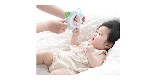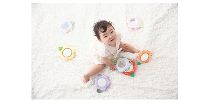 好奇心旺盛な赤ちゃんのためにつくられた布製のソフトミラーです。赤ちゃんは身の回りのものに興味が出てくる生後6か月頃から、視力の発達とともにミラーに映るものを目で追いかけたり、観察するようになります。