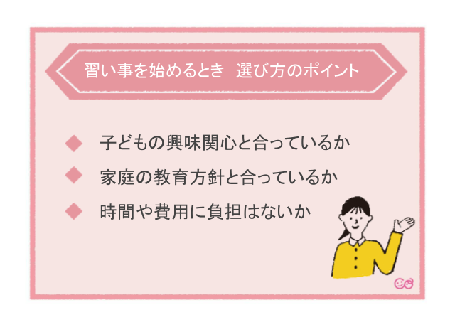習い事の費用や時間の負担についても確認しておく必要があります。