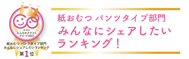 この度は、紙おむつパンツタイプ部門「みんなにシェアしたいランキング」第1位にご選出いただきありがとうございます。