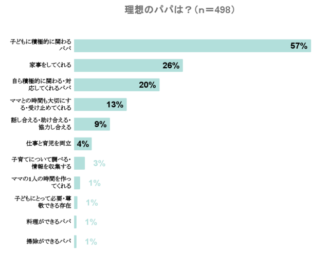 率先して家事をしてくれるパパが理想のようです。完璧にこなせなくてもやれるところから始めてみたり、やり方をきいてみたりしながら家事を担当してみましょう。