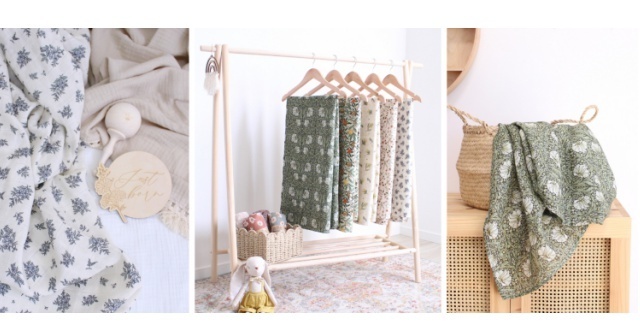 「花束スワドル」は、赤ちゃんを花束のように優しく包み込むことができるおくるみで、Instagramの人気投票で選ばれた5種類のデザインが商品化されます。