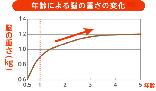 出典:www.meiji.co.jp*Dekaban AS. Ann Nurol. 4.345-356.1978 脳重量1歳で大人の約70%、3歳で大人の約90%