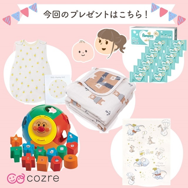 今月の毎日抽選くじはこちらをプレゼント『Mafabebe 6重 ガーゼケット』『パンパース おしりふき 肌へのいちばん 56枚x12パック』『6重ガーゼ イブル スリーパー 綿100%』『ジョイパレット アンパンマン NEW まるまるパズル』『un doudou ベビー タオルケット Disney ダンボ』コズナビをチェック♪1日1回&Wチャンスも!メールで届く「コズナビ」を開いて上の画像と同じバナーをタップ!その場で当選結果がわかるドキドキのキャンペーンです♡1日1回の抽選が可能なので、ぜひ挑戦してね♪コズナビをまだ受け取っていない人は、プロフィール画面からメールマガジン設定「配信する」にチェックを入れてくださいね。メルマガ設定を確認する マガジン編集部さんの関連リンク 【随時更新】コズレプレゼントキャンペーンまとめ!ママ・子どもに嬉しい豪華賞品無料会員登録をして子育ての達人に! ・掲載内容や連絡先等は、現在と異なる場合があります。・表示価格は、改正前の消費税率で掲載されている場合があります。ご了承ください。 関連記事 【1月度】毎日抽選くじ更新のお知らせ exkwsmg12 【12月度】毎日抽選くじ更新のお知らせ マガジン編集部 【10月度】毎日抽選くじ更新のお知らせ マガジン編集部 関連するキーワード