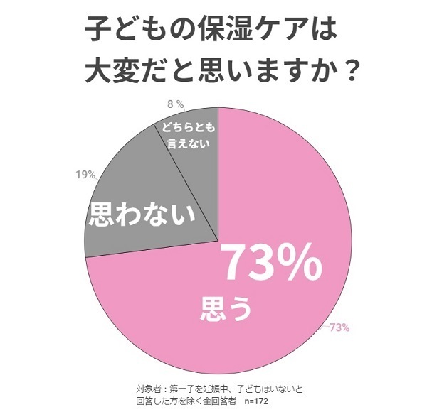 コズレが実施したアンケート*では、ほとんどの方が「子どもの保湿ケアは大変」と感じていることが明らかに(下図)。