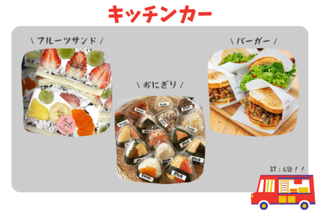 フルーツサンドや焼き芋スイーツ、ラーメン等のキッチンカーも出店予定です!