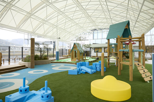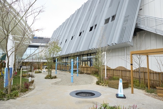 屋外エリアの大半を覆う巨大なルーフがあるので、雨の日や日差しの強い日でも思いっきりあそべるのがうれしい。