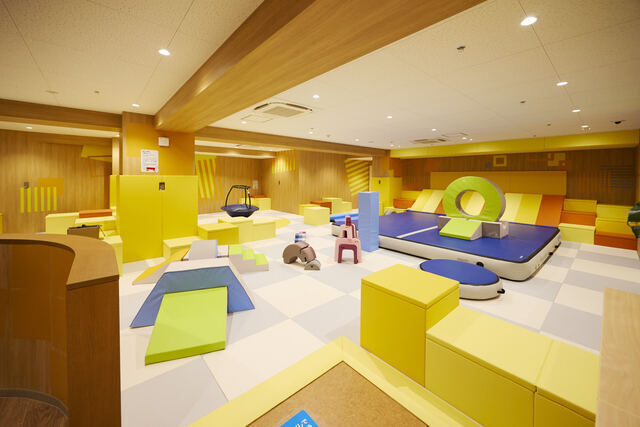 室内では色とりどりの安全な遊具がたくさんあって、次々に楽しめるのでくたくたになるまで体を使ってあそべますよ~