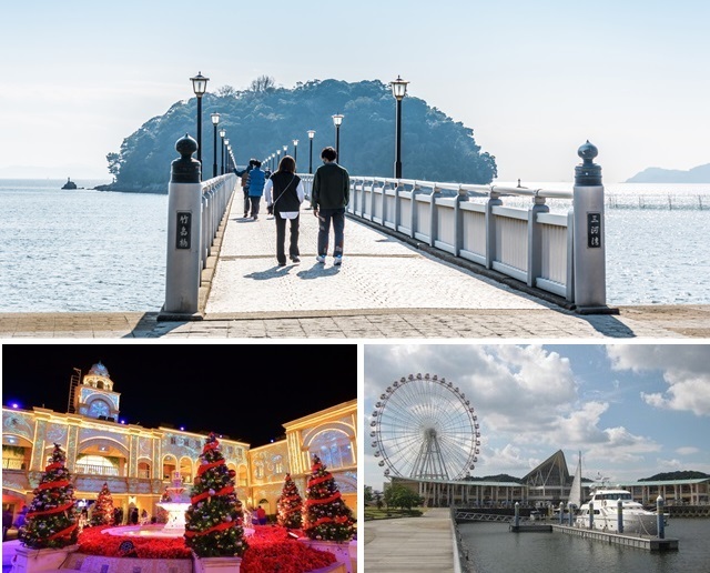 鈴木市長も「子育てしやすい街」と胸を張る蒲郡は、ファミリーで楽しめる観光スポットもいっぱい。三河湾に浮かぶ天然記念物で、橋を利用して入れる竹島(上)、テーマパーク、ショップ、レストラン、ホテルを楽しみ尽くせるラグーナテンボス(下2つ)は定番人気。