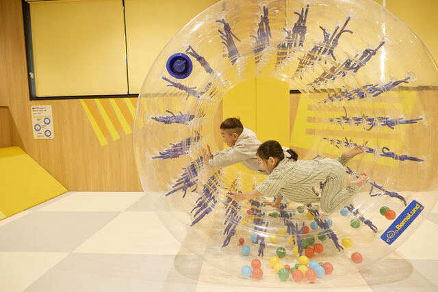 外にもボールあそびの遊具が。軽くてやわらかい素材だから小さな子どもでも安心です。