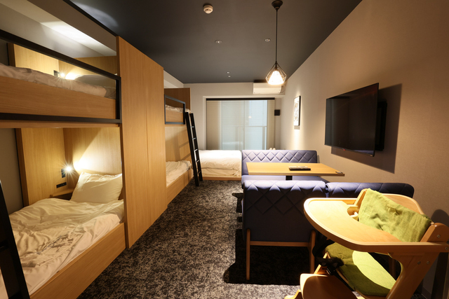 今回、『ベビー&キッズが安心して泊まれる コズレのお宿』に認定されたお部屋がこちら!コンセプトは『2段ベッドで大人も子どもも楽しく滞在!』 。2段ベッド付きの広々としたお部屋は、子育て中のママパパの意見をたくさん取り入れて作られています。