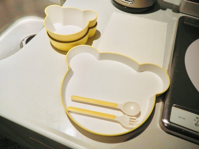 ママ かわいい子ども用食器も!落として割ってしまう心配がないし、子どもが自分で食べやすいから助かる〜!