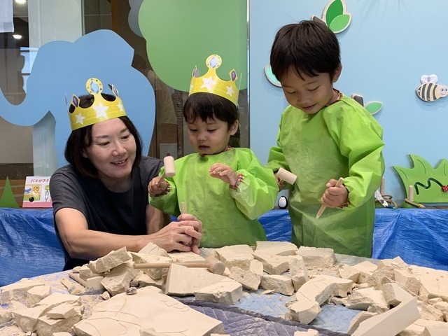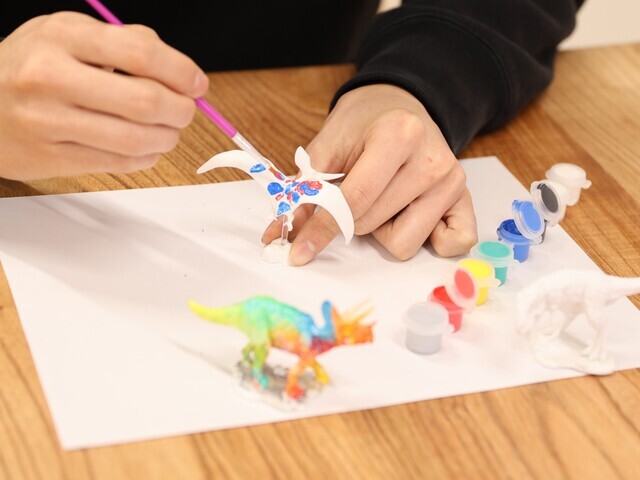 『 恐竜化石ラボ』は、標本展示以外にも、化石の発掘や自分でぬりえした恐竜と動きを連動させるデジタル体験、恐竜フィギュアへのペインティングなど、体験に特化したイベントです。