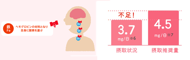 ※6 12〜36ヶ月の「国民健康・栄養調査(平成28年)」摂取量中央値、ただし女子の鉄摂取量中央値は3.3mg/日