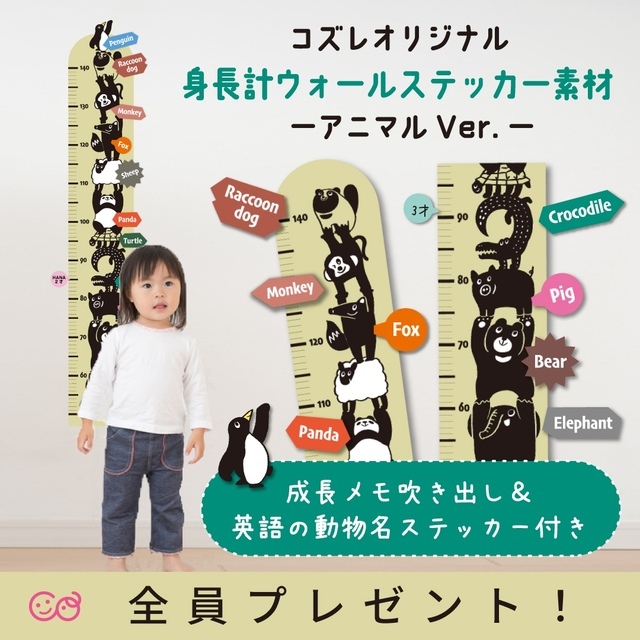 無料でダウンロード!コズレのオリジナルウォールステッカーの身長計
