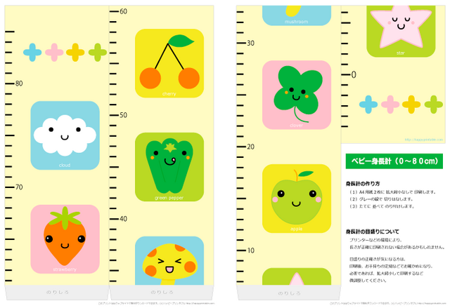出典:happylilac.netカレンダーの無料ダウンロード素材をメインに扱うサイトです。身長計は0~80cmまでと70~150cmまでの2種類のサイズ展開で、子どもの成長度合いに合わせてダウンロードが可能です。
