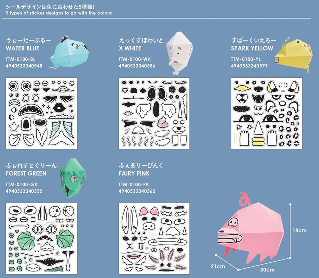 「ヘッドペット」は、とうもろこし澱粉配合素材を用いた、いろいろな生物が作成できるキットです。好きな動物や想像上の生き物を自由に作り、色を塗ったり模様を描いたりして楽しめます。本体シート、パーツシート、自由シート、シールシート、両面テープがセットになっており、はさみやのりを使わずに繰り返し楽しむことができます。