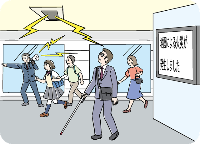 火災や震災などの災害時、高齢者や身体障害者の方々には、とっさの危険から身を守れなかったり、逃げ遅れたりするなど、様々な課題があります。