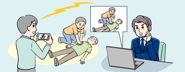 通信指令員がビデオ通話により、ライブ映像を確認しアドバイスを行います。