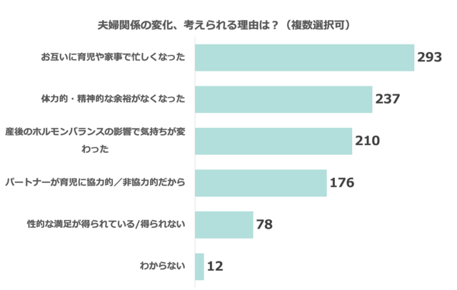 理由としては、「体力的に疲れてしまう」、「気持ちが乗らない・パートナーへの気持ちが変わった」、「子どもがそばにいると気まずい」、「パートナーが気を遣っている(誘ってこない)」などの他にこんな声も。