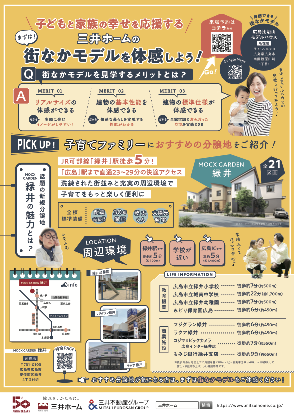 来店予約はこちらから!MOCX GARDEN 緑井【新築建売分譲】の詳細はこちらまとめ ・掲載内容や連絡先等は、現在と異なる場合があります。・表示価格は、改正前の消費税率で掲載されている場合があります。ご了承ください。 関連記事 おうちCO-OPからの出産お祝い!「スマイルボックス」プレゼント! プレスリリース情報 PR 住宅情報館公式YouTubeチャンネルで、住まいの情報を配信中! プレスリリース情報 PR マストスクエア東山 建物内モデルルーム見学を受付中(愛知県) プレスリリース情報 PR 関連するキーワード