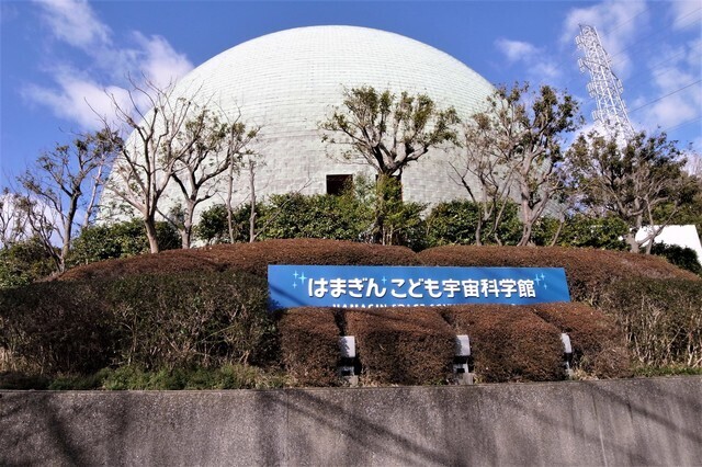 子育て層に大人気のはまぎん こども宇宙科学館が目と鼻の先!敷地内からもこのように、その存在感たっぷりの外観がのぞめます。